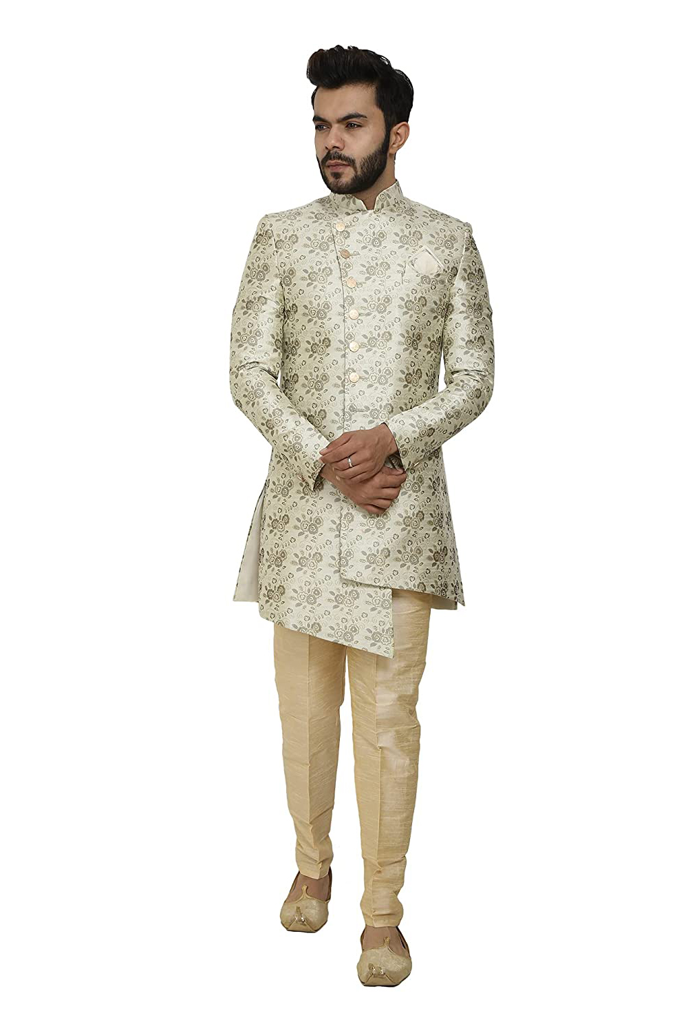 HAASSO introduces to you this classy Indo western for men stylish in a variety of materials and all occasions. A completely traditional Indian design, this indo western sherwani is handmade from the absolute finest Polyester and feels as light as air to treat you to stylish luxury with every wear. Like traditional dress worn in India, this sherwani dress includes both a top and a bottom.